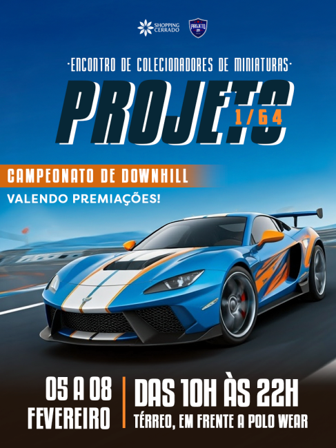 O Shopping Cerrado preparou uma atração imperdível para o mês de fevereiro. Entre os dias 05 e 08 de fevereiro, o shopping recebe o Projeto 1/64, um encontro de colecionadores de miniaturas automotivas que promete encantar públicos de todas as idades.