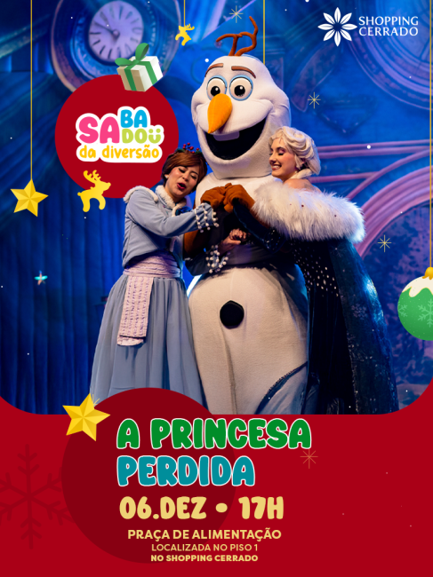 Prepare-se para uma tarde mágica no Shopping Cerrado! No dia 06 de dezembro, às 17h, a Praça de Alimentação será palco de uma apresentação encantadora: A Princesa Perdida. Um espetáculo cheio de aventura, música e personagens que vão conquistar toda a família.